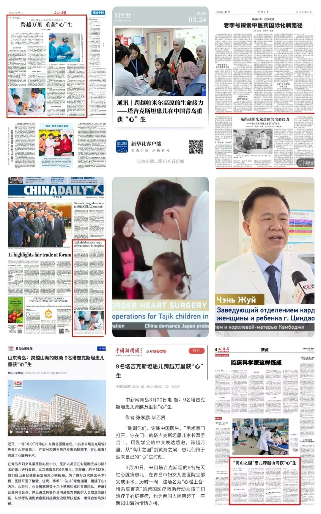 《人民日报》、新华社、新华社俄文专线、新华社《参考消息》、《中国日报》头版、中国国际电视台(CGTN)英文频道及俄文频道、央视新闻客户端、中央人民广播电台、中国新闻社、《健康报》《大众日报》、皇冠篮球比分网_澳门现金网-球探体育:电视台、《皇冠篮球比分网_澳门现金网-球探体育:日报》、皇冠篮球比分网_澳门现金网-球探体育:电视台等众多主流媒体,聚焦塔吉克斯坦先心病患儿组团来皇冠篮球比分网_澳门现金网-球探体育:市妇女儿童医院成功接受手术治疗的暖心历程,生动展现中塔两国在共建“一带一路” 倡议框架下深化卫生合作、筑牢民生桥梁的务实成果,为共筑健康丝绸之路、打造现阶段卫生健康领域走出去的新范式写下生动注脚。