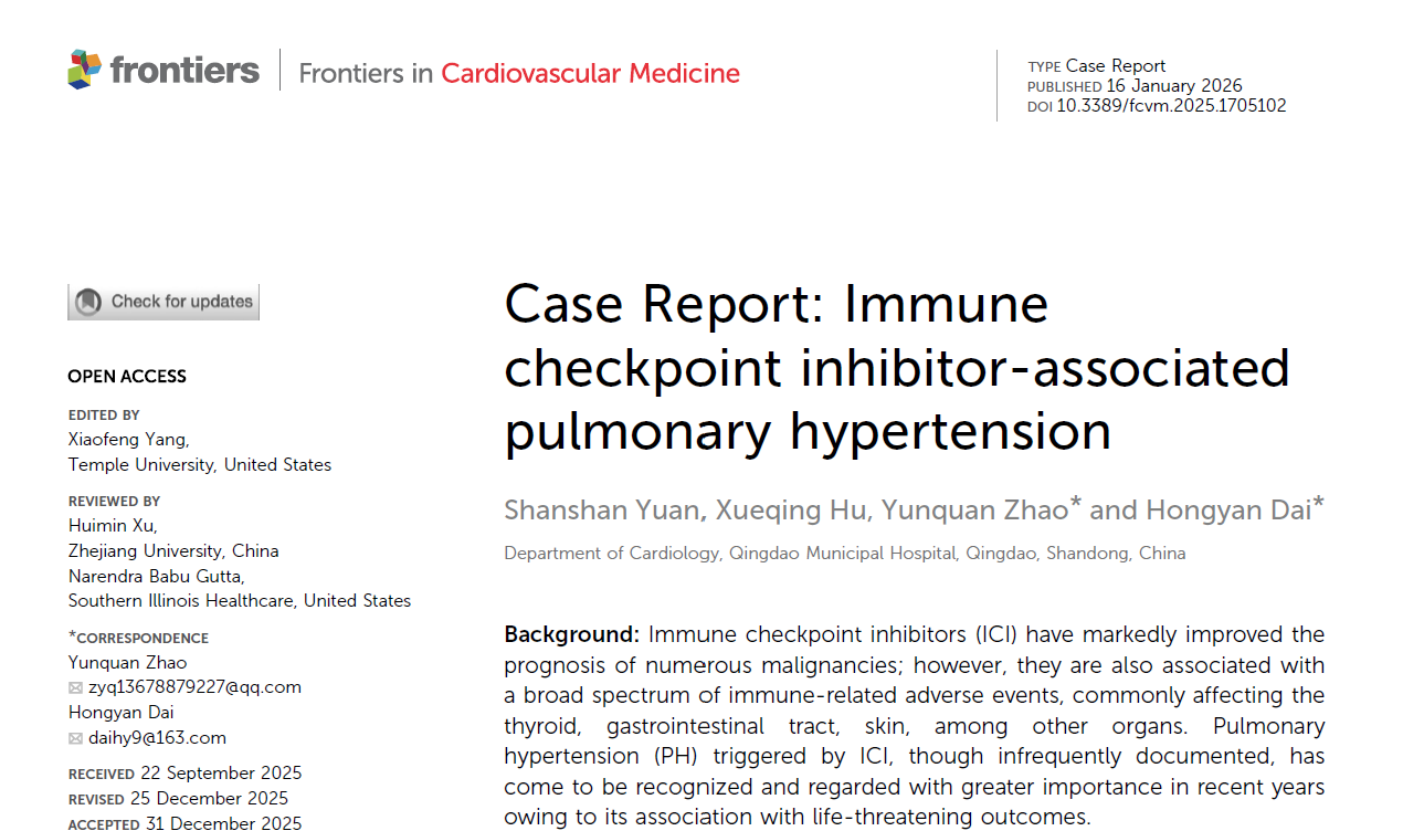 近日,皇冠篮球比分网_澳门现金网-球探体育:市市立医院保健三科主任戴红艳带领肺动脉高压团队成功诊断并救治一例由抗肿瘤药物免疫检查点抑制剂(PD-1抑制剂)引发的重度肺动脉高压患者,为肿瘤免疫治疗相关罕见不良反应的识别与处理提供了宝贵的临床经验,为肿瘤患者的安全治疗敲响了警钟。