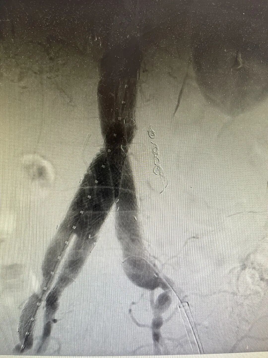 手术最大的挑战,是如何在隔绝动脉瘤的同时,精准重建髂内动脉。采用腹主动脉分支支架、髂动脉分支支架技术重建腹主动脉、髂总动脉、髂外动脉、髂内动脉,是目前公认的既能隔绝动脉瘤、又能最大限度保留盆腔功能的最优解之一。这项技术操作复杂,对医生的技术和团队的配合要求极高,经过手术团队精细操作,手术顺利结束,患者已顺利出院。