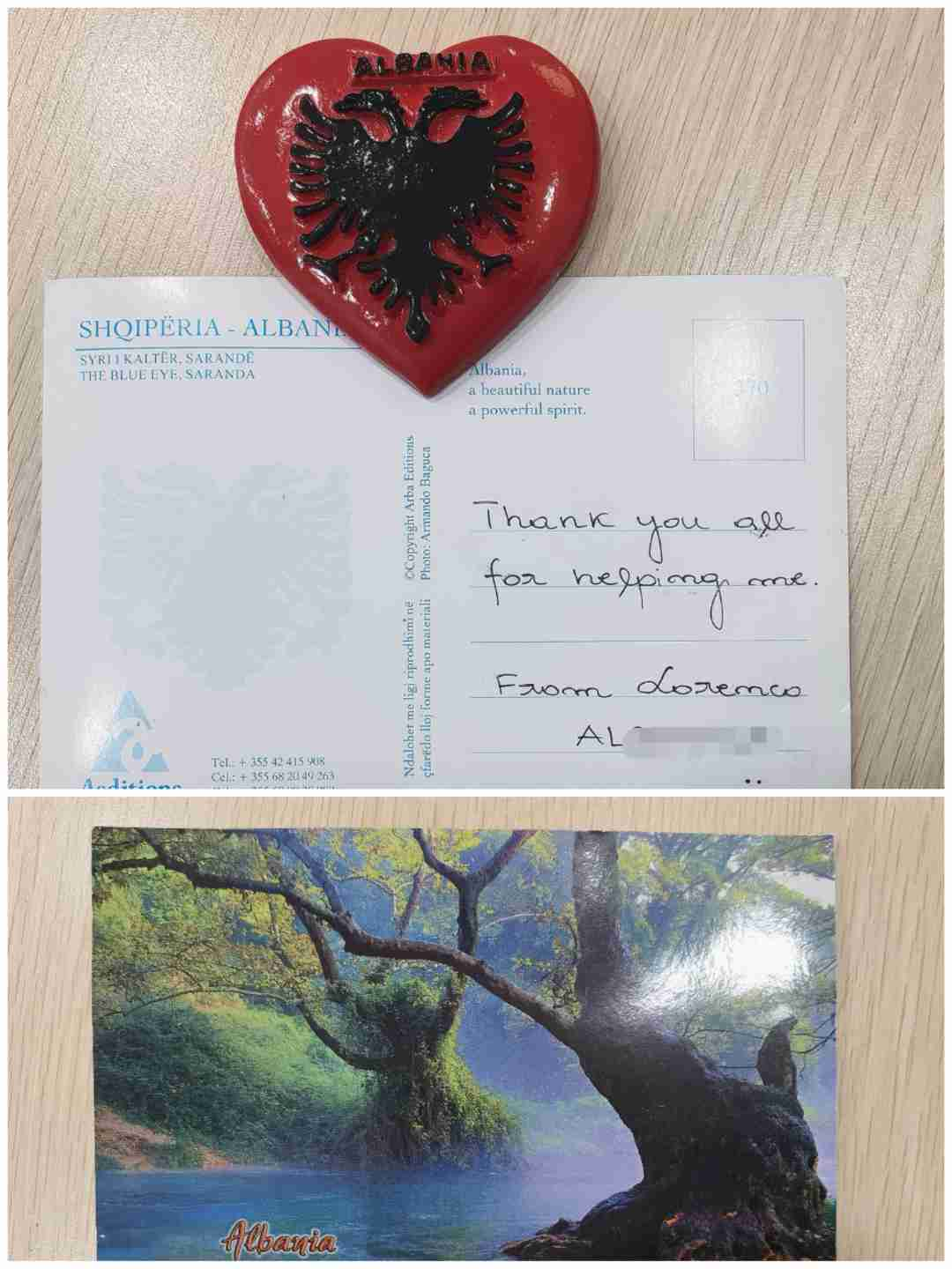 当日下午,网点大厅走进一位神情焦急的外国客户,手持护照和汇款相关单据,因语言不通难以清晰表达需求。大堂经理第一时间主动上前,安抚其情绪,了解客户需要办理的业务,随后引导客户至非现柜台办理业务,并同时启用多语言翻译工具,精准沟通业务细节,帮助客户梳理所需材料清单,柜面办理环节中,细致审核护照、签证、银行卡等材料,并针对客户不熟悉汇款单据填写规范的问题,逐栏讲解填写要点,帮助核对账户信息与汇款路径,确保每一项信息准确无误。在业务实际办理过程中,客户觉得西联汇款虽然解决了收款账户的问题,到手续费过高,决定先中止业务,稍后跟家人沟通后再汇款。工作人员向客户推荐了非居民跨境汇款,沟通需要的材料和费用问题后,与客户约定第二日更换收款账户后再发起业务,第二日客户如约而至,工作人员合规高效完成业务办理。拿到回单的外国客户连连竖起大拇指,用不太流利的中文说道:“谢谢你们!”,并为工作人员送上明信片感谢信和代表阿尔巴尼亚文化的双头鹰冰箱贴,表示浦发银行热情专业的服务为异国他乡的自己提供了帮助,解决了他的大问题。