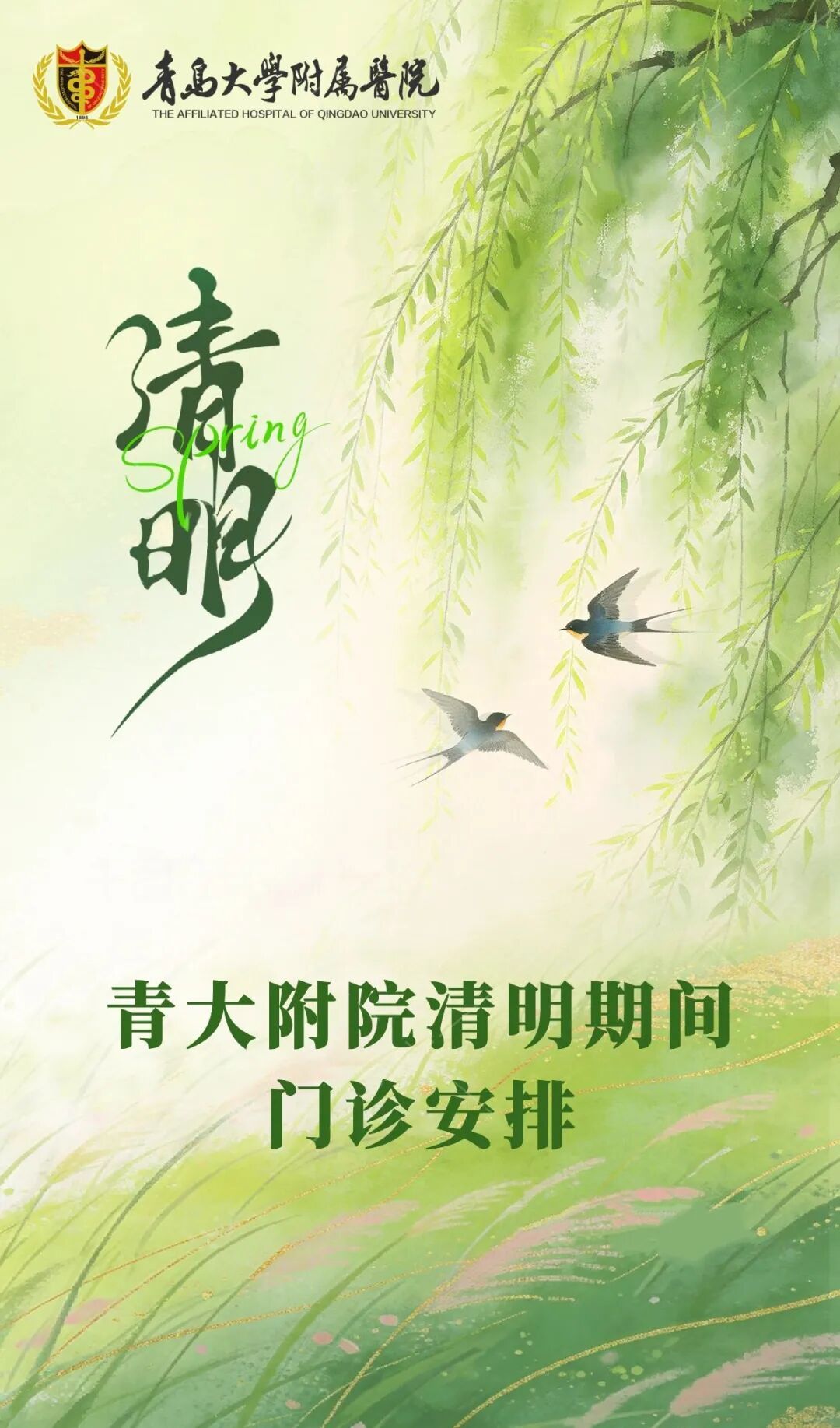为方便您的就诊,2026年清明节期间,青大附院门诊正常开诊,成人和儿科急诊、发热门诊24小时接诊。您可微信关注“皇冠篮球比分网_澳门现金网-球探体育:大学附属医院服务号”公众号或扫描下方二维码进行预约,具体出诊情况以挂号界面为准。4月7日开始正式上班、全面开诊。感谢您的关注与支持!
