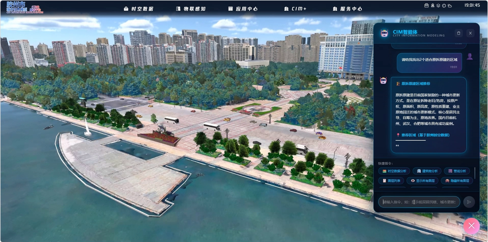 作为融合多项关键技术的城市级数字化平台,胶州CIM以硬核科技赋能新质生产力,为城市高质量发展注入源源不断的创新动能。依托CIM平台强大的时空分析、模拟仿真与可视化能力,围绕城市供给保障、综合管理、城乡治理和综合运营4大主题拓展了10个应用场景,推动城市治理从“单点监管”向“系统智治”转变。例如:通过打通供热企业监测数据,实现供热系统“源-网-站”全实时数字化管理,提升供热保障水平与群众满意度;通过打通污水处理厂监测数据,创新“厂-网-河”一体化管理与“按效付费”激励模式,使企业主动优化污水处理,彰显平台管理考核创新的核心价值。