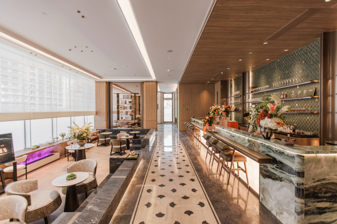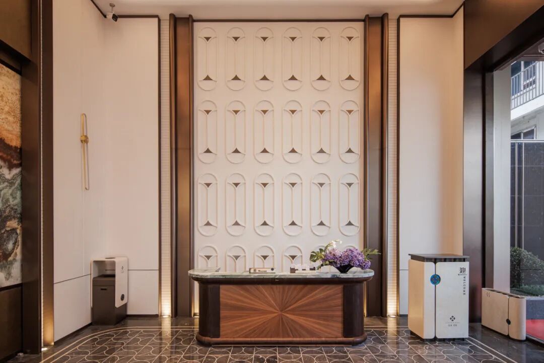 约48*8m奢阔门仪,是绿城·璟悦予城市的第一眼惊艳。艺术铺装与时尚格栅交织韵律,星耀灰大理石与百达翡绿巧妙搭配,温润中藏灵动,尽显高阶质感与格调。